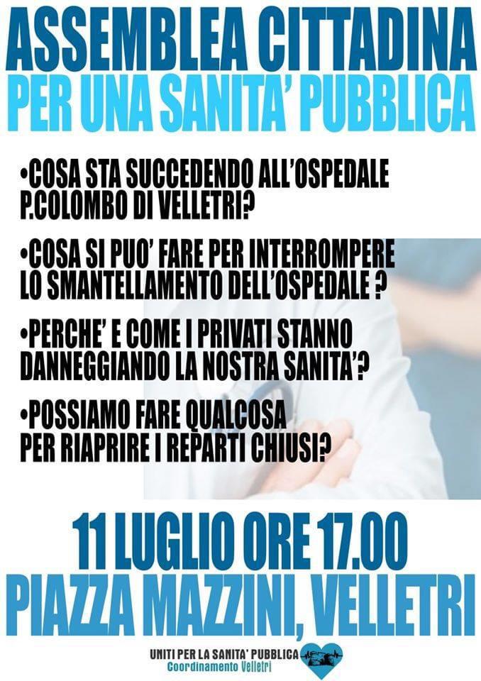 Velletri ha voluto con forza ribadire che non è disposta ad assistere passivamente allo smantellamento dell’ospedale pubblico e al contrario si organizza e si prepara a lottare per l’ampliamento dei servizi sanitari pubblici territoriali e sottoposti al controllo popolare e, insieme alle realtà che già si sono manifestate il 26/6 sotto la Regione Lazio, intende costruire un ampio e forte movimento di lotta per la salute e il benessere della popolazione.