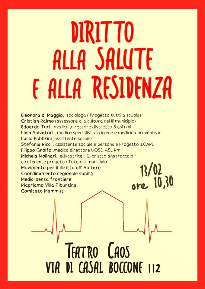 Vi invitiamo sabato 13 febbraio alle ore 10.30 nel teatro Caos nello stabile occupato di via Casal Boccone 112 insieme a
